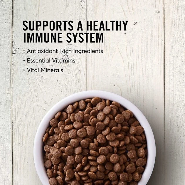 - Grain-free senior dry dog food helps support healthy aging with real chicken as the first ingredient, plus a blend of targeted nutrients.