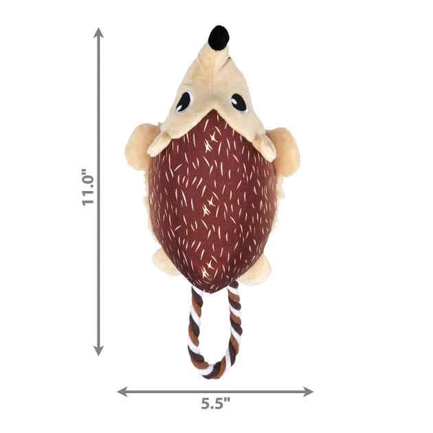 Tugging play satisfies your dog’s natural instincts–and he’ll get plenty of that with the KONG Cozie Tuggz Hedgehog Dog Toy. This toy’s handle is made from sturdy cotton rope, knotted inside its body for sturdiness and hours of tugging fun. The character squeaks and crinkles to keep the fun going for hours of healthy, interactive play. When tussle time is over, the soft fur invites puppy snuggles.