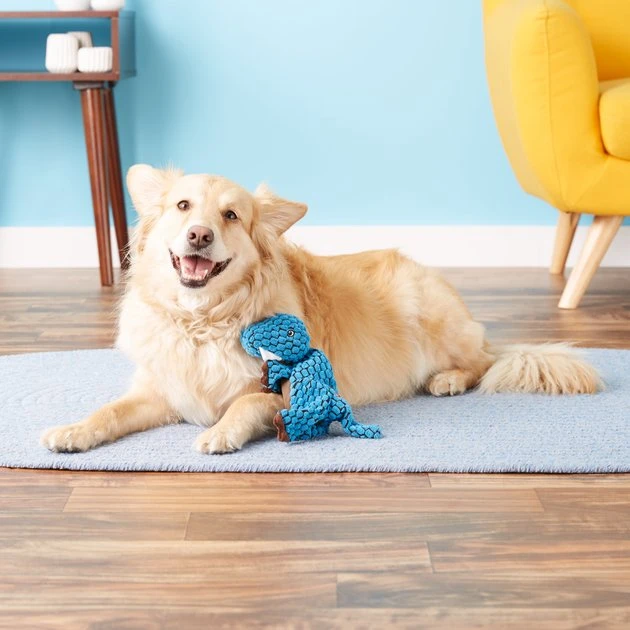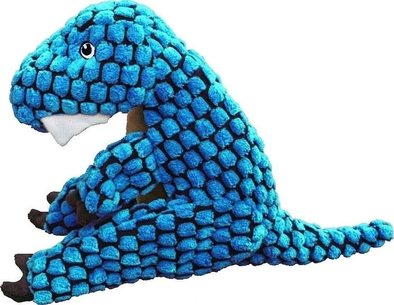 The KONG Dynos Dog Toy provides Jurassic-themed fun for pets and their parents. This adorable plush toy is made with a reinforced lining for long-lasting games of fetch and tug-o-war. The unique and varied textures on the outside intrigue dogs and promote active play, and the combination squeaker and crinkle sounds in the center keep dogs entertained.