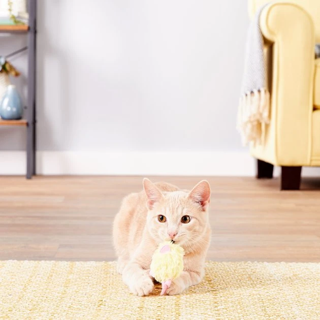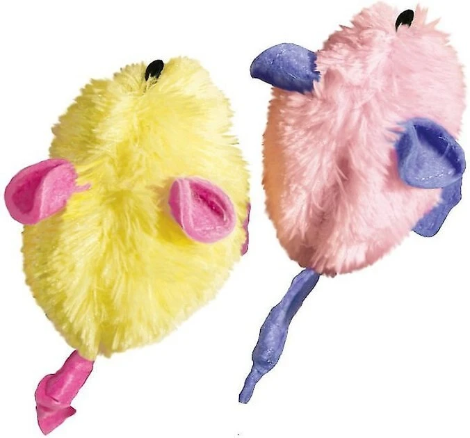 The KONG Kitten Mice Cat Toys are designed to amuse and entertain energetic young cats. These toys are made just for your playful kitten to help fulfill his instinctual desire to hunt, chase and capture prey. The soft yet durable plush material is gentle on teeth, and the fun crinkle sound entices cats to play. The center is filled with KONG Premium North American Catnip to keep your kitten occupied for hours.