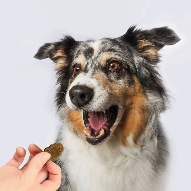 Keep Fido’s tail wagging with KONG Mobility Soft & Chewy Dog Treats! Treat your playful pup to one of these delicious, soft chews daily to help maintain his joint mobility and relieve occasional stiffness. These made-in-the-USA morsels are formulated with powerful ingredients like glucosamine, green-lipped mussels, turmeric and tart cherry. Plus, they are 100% free from artificial colors and flavors.