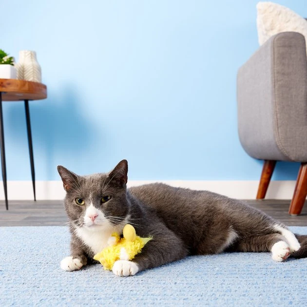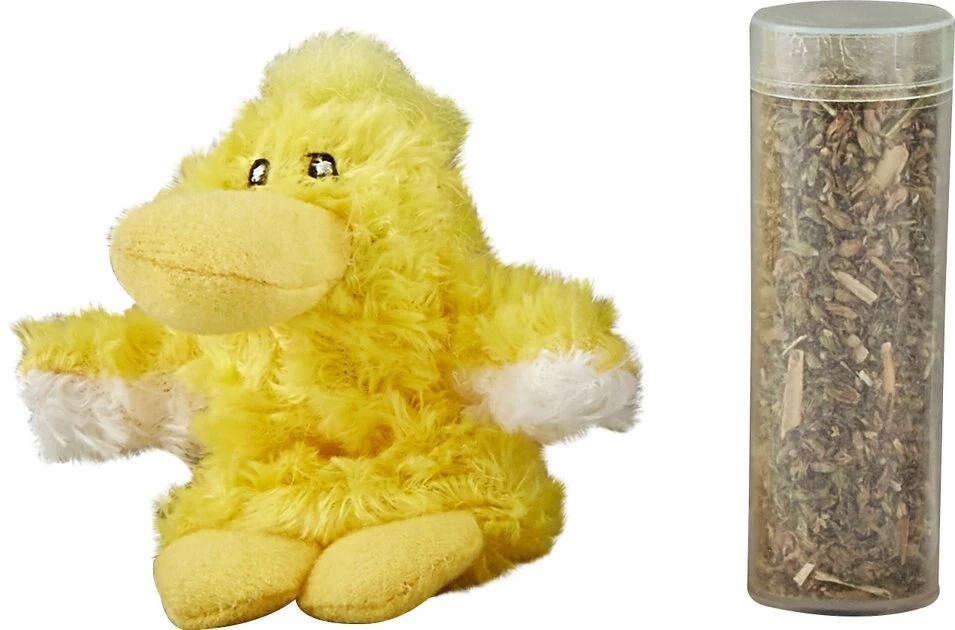 This soft and snuggly plush catnip toy has a reclosable pouch to hold fresh catnip securely in place. The toy include a generous amount of KONG’s premium North American catnip in a reclosable vial. When the catnip scent starts to fade, simply add more fresh catnip for another round of fun! Catnip can be stored in the freezer to help keep it fresh. The toy is machine washable with the catnip removed.