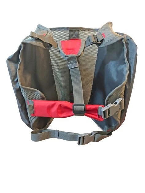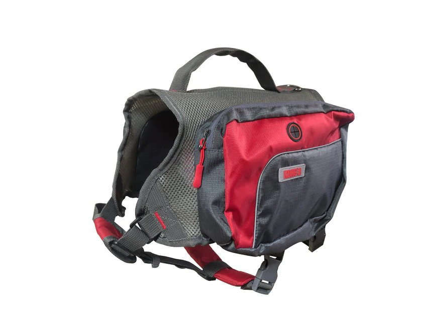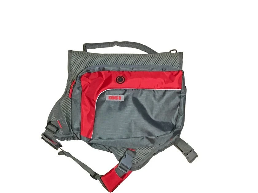 The Kong Scout Travel Day Dog Pack in Red/Gray is the paw-fect addition to all your canine’s adventures. This clever nylon-and-polyester doggy pack features a contoured design to keep Fido comfy and a rescue handle for fast retrieval. The mesh top helps keep him cool, while the two spacious saddle bags offer plenty of room to stash necessities. Plus, dual poop bag exits mean you can easily clean up after your furry friend on the go.