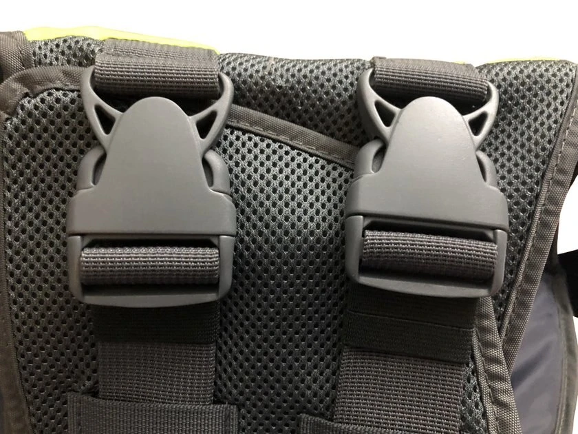 - A fuzzy fastener belly closure and quick-release buckles on the neck, chest and belly ensures a snug, comfortable fit.