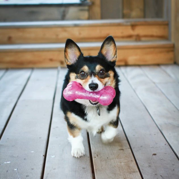 KONG Crackle is a new twist on a fun and favorite line—KONG Squeezz! This toy features a unique and enticing crackle sound, which is paw-fect for quiet play. Squeezz Crackle is brightly colored and boasts an eye-catching sparkle. The flexible material is great for both indoor and outdoor play. To really whip your pup into shape, give this toy a toss and watch it land with an erratic bounce for a fun game of fetch. KONG’s Squeezz Crackle Bone just might be your dog’s new favorite toy!