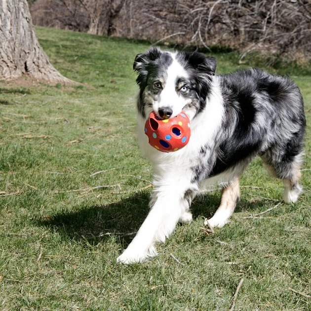 - Tumbling inner ball provides an unpredictable, squeaky surprise!