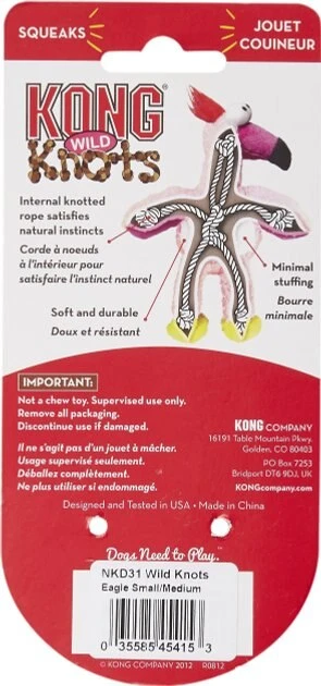 Soft and cuddly on the outside and made of rope on the inside, a Wild Knot bird will become your pup’s favorite shaker toy. And it squeaks! Minimal stuffing means lots of floppy fun and less mess as this bird becomes well-loved. Choose from a number of birds, or get a few to make your own Wild Knot family.