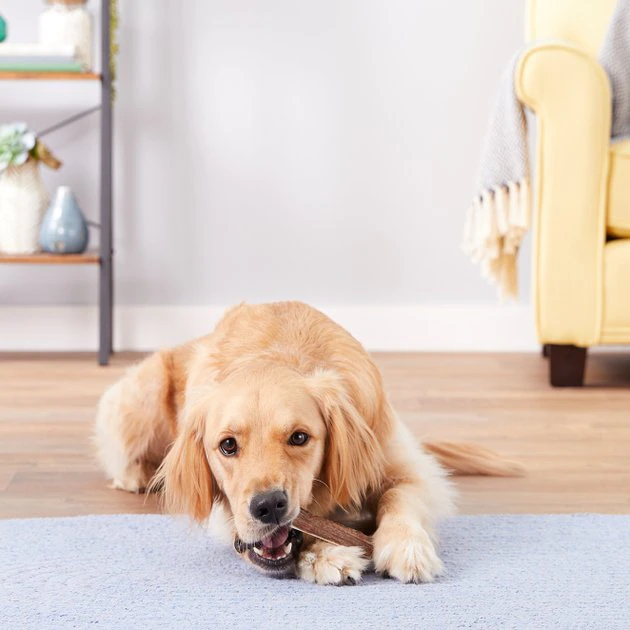 Please provide plenty of fresh water when giving any chew or treat. Because this is a natural treat, its sizing, color and appearance may vary this is normal. You may also notice a natural scent and oil while your pal chews; this natural oil may stain your furniture, carpeting or other surfaces. To prevent injury and choking hazard, please watch your pet while they enjoy this treat and be sure to choose the appropriate size chew. If this product splinters or develops sharp edges, throw it away immediately for your pet’s safety.