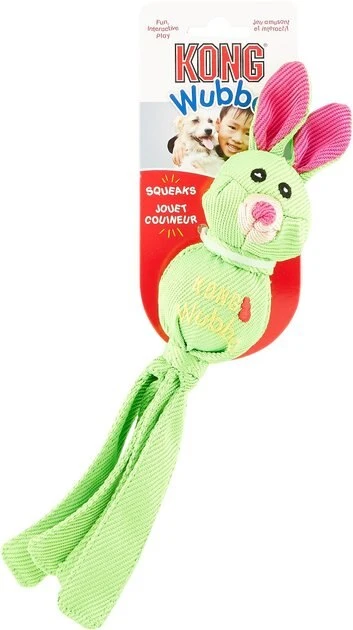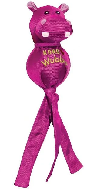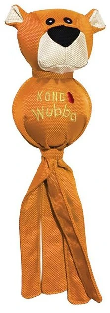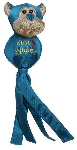 Games of fetch and tug-of-war have never been cuter! KONG Wubba Ballistic Friends Dog Toys are just as versatile as they are tough. Toss them by the floppy tail, and bounce it off the fence. Hang on with one hand and watch Buster try to shake it from your grip. Wubba Ballistic Friends come in multiple sizes and feature four playful, squeaker-filled characters: Orange Panther, Green Bunny, Pink Hippo, and Blue Monkey. Characters ship at random.