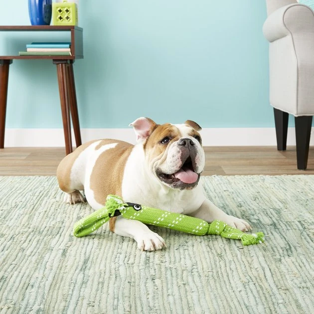 - Made from thick, woven, cotton-polyester blended rope; emits a fun “crackle” sound that entices and entertains your dog.